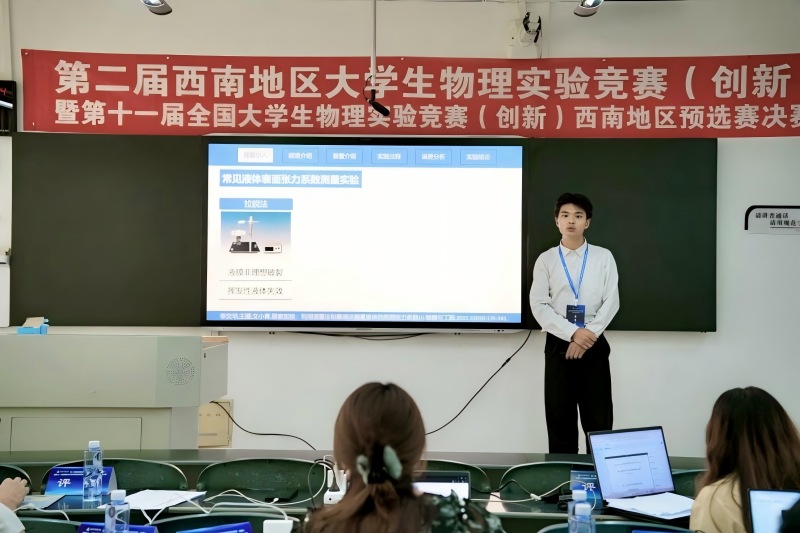 据悉,本届竞赛由教育部高等学校大学物理课程教学指导委员会大学物理实验专项委员会西南地区工作委员会、四川省物理学会、重庆物理学会、云南省物理学会、贵州省物理学会、西藏自治区物理学会联合主办,西南科技大学承办,四川省军民融合研究院、西华大学协办。本届比赛汇聚了来自西南地区60所高校的466支精英团队,2300余名师生参加比赛。比赛现场,来自西南地区各个高校的选手各展所能,竞赛环节涵盖实验讲解和答辩两大核心模板,对选手的专业功底和综合表达能力提出了双重考验。决赛现场,我校参赛选手李盈颖讲课逻辑缜密,答辩机敏流利,助力团队摘得讲课类一等奖,这是我校在该赛事中第二个一等奖,彰显了我校学子的稳定接力实力。其余各组选手也凭借优秀表现分获二等奖、三等奖。