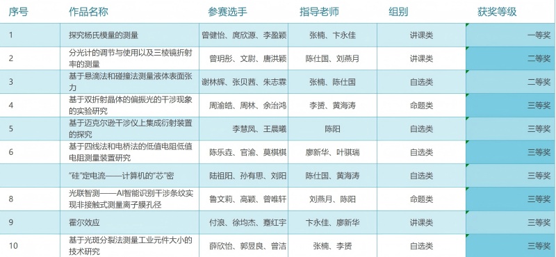 大学生物理实验竞赛(创新)是国家竞赛目录排行榜项目,也是全国基础物理领域最具影响力的赛事。该竞赛旨在培养大学生的创新精神和实践能力,在竞争中提升学生的团队协作意识和综合素质。此次赛事成绩不仅彰显了我校学子的专业实力,更凸显了我校物理课程教学改革的具体成效。未来,我校基础学院将继续推进课程教学改革,创新实践教学平台,坚持以赛促学、以赛促教,着力提升学生创新思维、创新能力,为社会培养更多高素质人才。