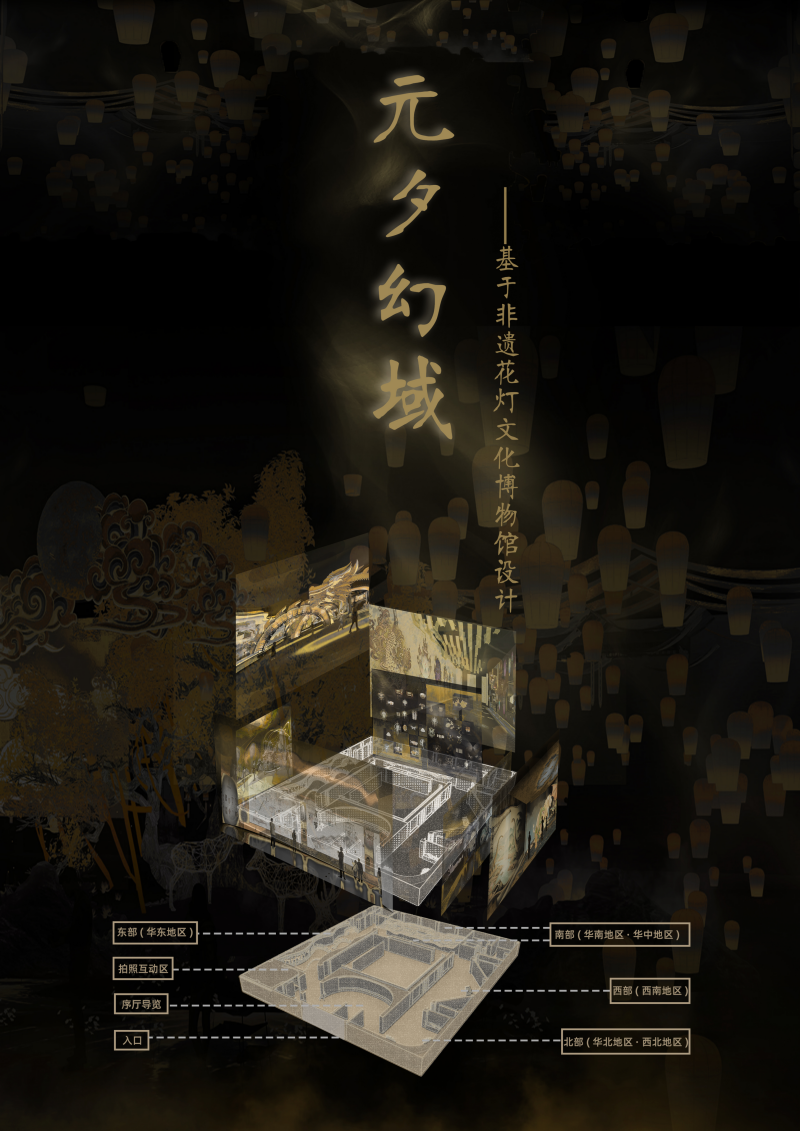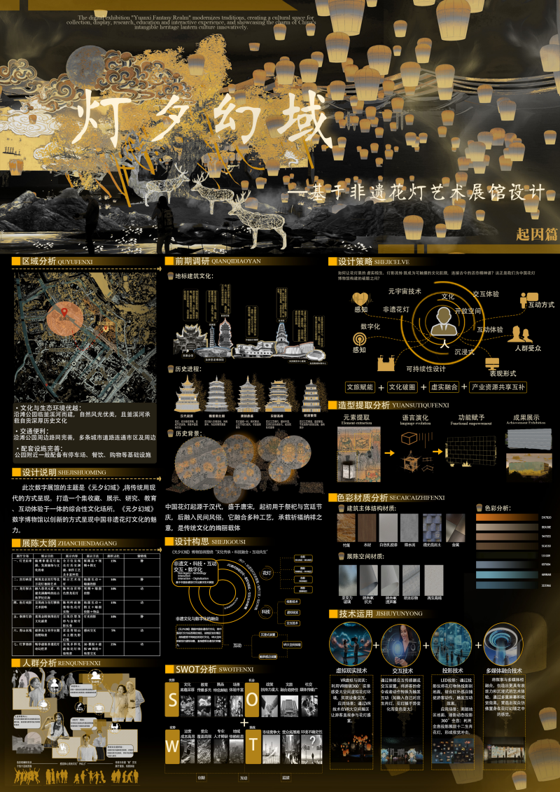此外,胡丹团队的《幽冥巡游・丰都庙会》、代林鑫团队的《元夕幻域 —— 基于非遗花灯文化博物馆设计》等 4 件作品获全国二等奖;王雪琦团队的《中秋・航天望月》、金秋悦团队的《沸腾元界-舌尖上的文明重启》等5件作品获全国三等奖,覆盖传统文化、航天科普、可持续发展等多元主题,展现了学院学生的创新视野与社会关怀。
