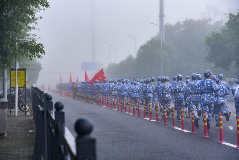 一路上,同学们步伐整齐,昂首挺胸,展现出了昂扬的斗志和饱满的精神风貌。教官与辅导员全程陪同,时刻关注学生状态,确保安全。尽管汗水浸湿了衣衫,但没有人轻言放弃,彼此间的鼓励与帮扶成为途中最动人的风景。“团结就是力量”的歌声此起彼伏,充分体现了2025级新生强大的凝聚力。