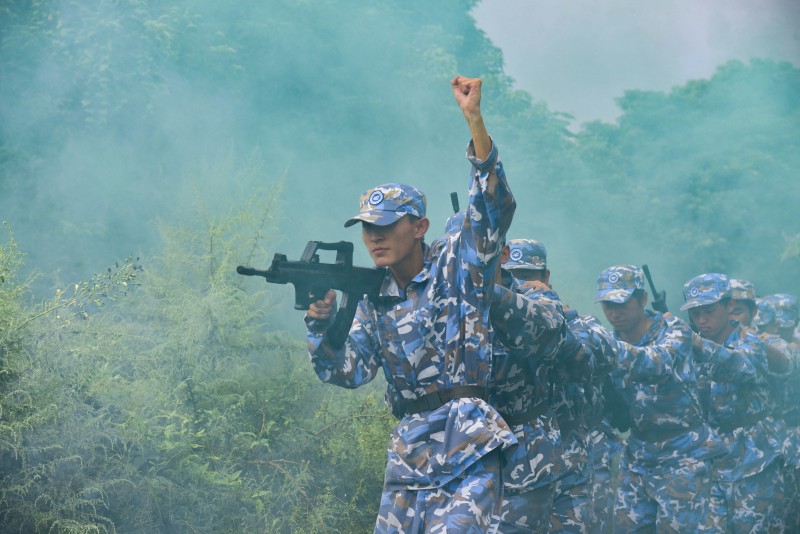 途经模拟“染毒地带”时,战术连班长举起拳头示意,全体同学立刻低姿半蹲前进,迷彩鞋踩过晨露浸润的地面,发出细碎的“沙沙”声。