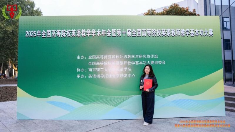10月24日,黄柳在南京理工大学与其他31名说课组省级特等奖教师展开线下激烈角逐。比赛中,黄柳以《Pioneers of Fligh(t 飞行先驱)》为题进行全英说课展示,凭借清晰的教学思路、创新的教学设计和流畅的专家答辩,最终脱颖而出,斩获全国二等奖的优异成绩,展现了我校教师良好的国际化教学能力。