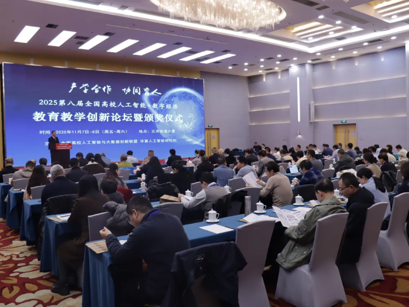 本网讯(文/图 计算机与物联网学院 郭晖)11月8日,“产学合作、协同育人”2025第八届全国高校人工智能+数字经济教育教学创新论坛在北京成功举办。论坛由全国高校人工智能与大数据创新联盟与华算人工智能研究院联合主办,北京航空航天大学、汕头大学等全国20余家高校和机构共同协办,来自产学研各界的140余位代表参会。
