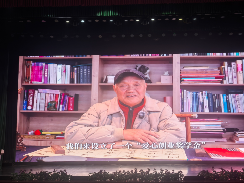 值得一提的是,表彰会现场播放了我校终身荣誉校长唐一科的专访视频。视频中,老校长深情讲述了爱心创业奖学金的设立初衷,其投身教育公益事业的赤诚情怀感染了在场每一个人,更饱含期许地向重工学子致以殷切寄语。他勉励广大学子树立自信、锤炼自立、砥砺自强,在创新创业的征程中锚定信念、勇毅前行。