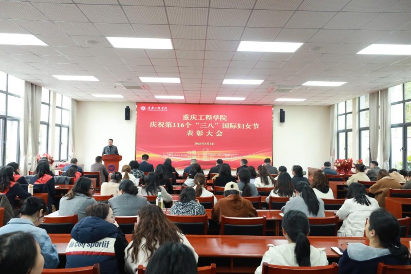 本网讯(文/党委宣传部、校工会 图/大学生记者团 向泽浩)春风送暖绽芳华,巾帼建功新时代。3月6日下午,重庆工程学院庆祝第116 个“三八”国际妇女节表彰大会在南泉校区行政楼第四会议室举行。学校党委书记陈长虹,副校长、工会主席王建东出席大会,各二级学院党总支书记、分工会主席及女教职工代表参会。大会由工会副主席熊力主持。