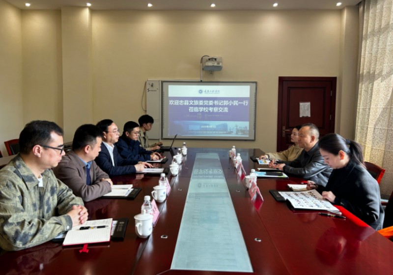 本网讯(文/图 数字艺术学院 李毅)4月3日上午,忠县文旅委党委书记郭小民一行到访我校数字艺术学院,双方就忠县文旅资源开发及校地合作事宜召开专题研讨会。学校党委副书记、常务副校长张业平出席会议,数字艺术学院相关负责人参会,共同探索文旅融合创新路径。