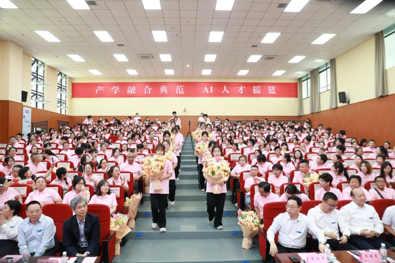 微访谈环节,优秀学生代表郑梦林与父亲、辅导员现场对话,分享成长点滴;数字孪生产业学院辅导员李晨燕讲述何姗珊逆袭成长之路,何姗珊父亲的真情流露让全场动容。家校同心、师生同行,生动诠释协同育人的温暖力量。