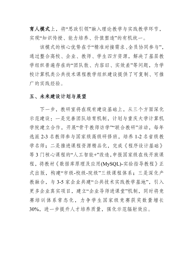 示范基层教学组织建设案例-软件公共教研室