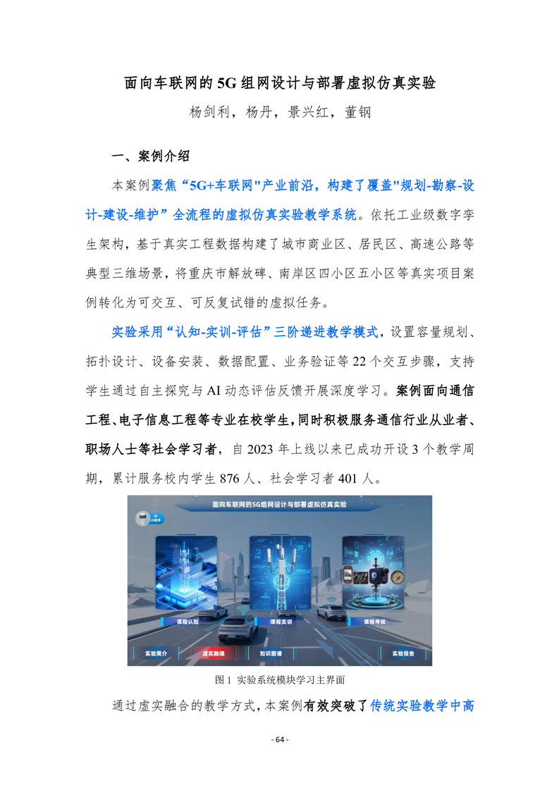 新形态数字教学案例 - 面向车联网的5G组网设计与部署虚拟仿真实验