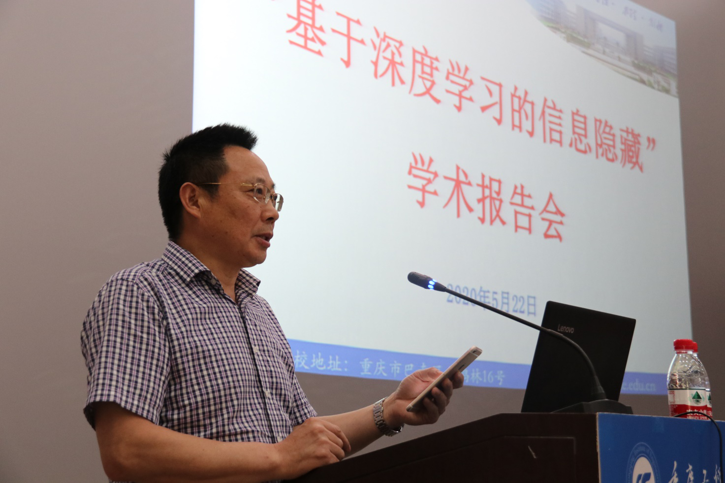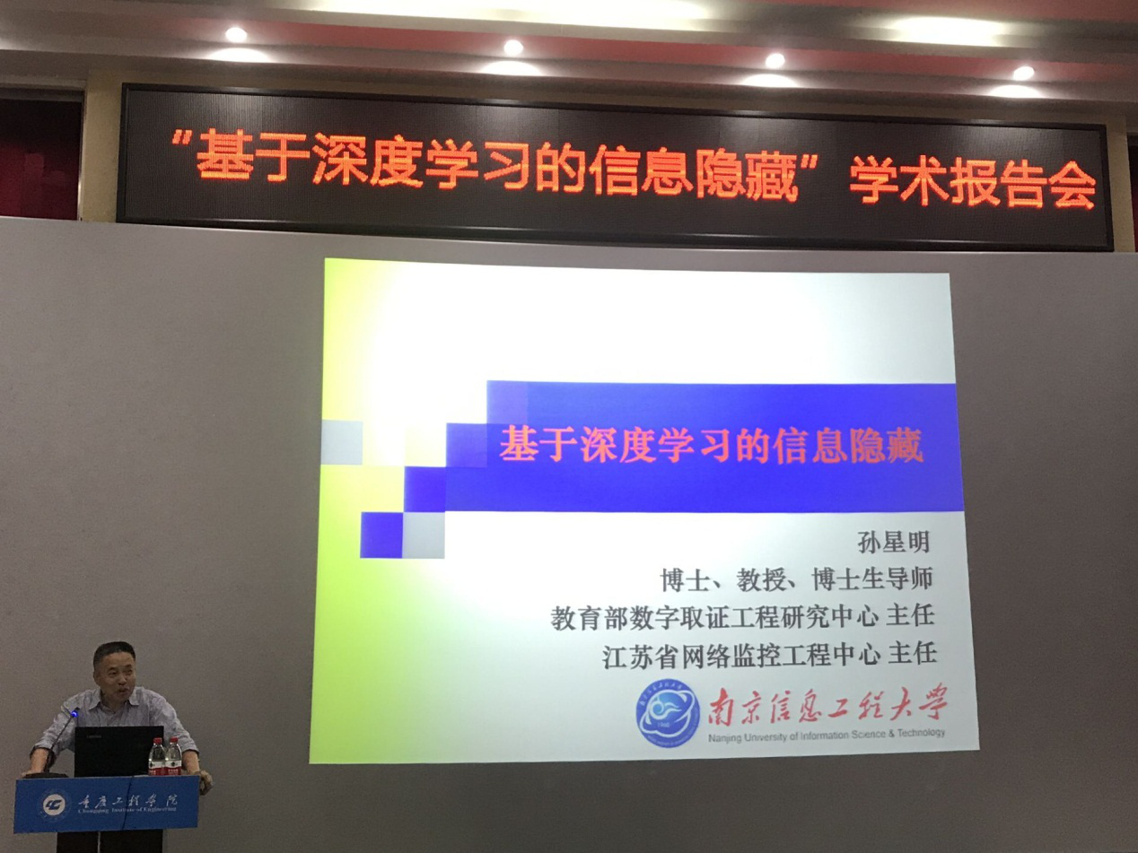 2020年5月22日下午14:30分,在重庆工程学院办公楼阶梯会议室,我院有幸邀请到孙星明教授作题为“基于深度学习的信息隐藏”的学术报告。报告由谭明术书记主持,大数据与人工智能学院、计算机与物联网学院、软件学院、电子信息学院领导与部分老师参加学术报告会,同时通过新浪微博同步直播本次报告会。
