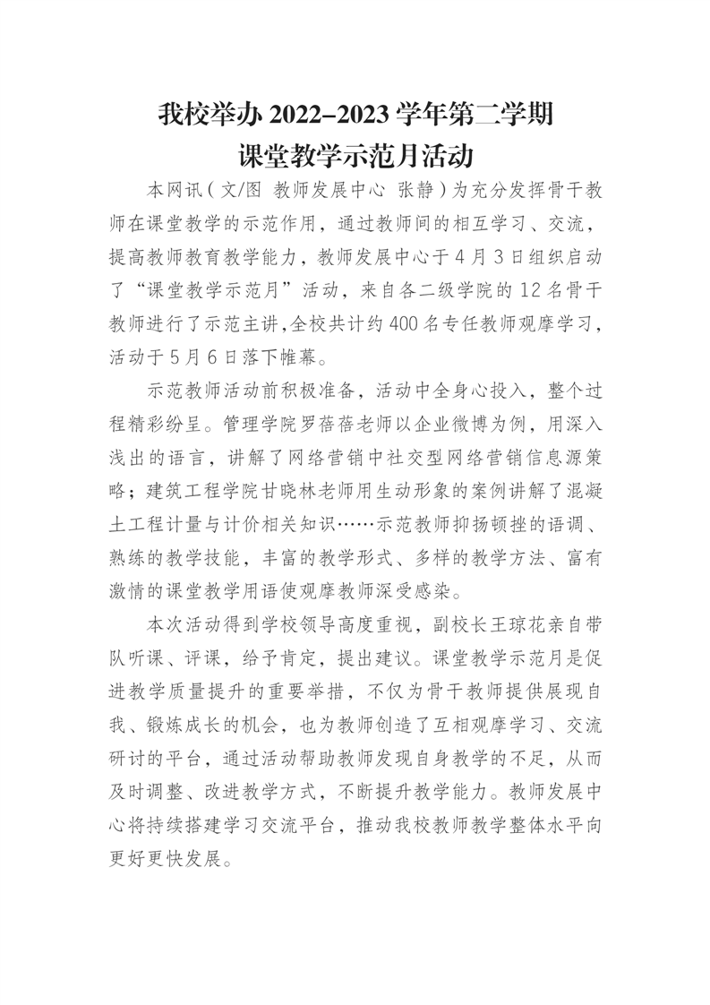 我校举办2022-2023学年第二学期课堂教学示范月活动