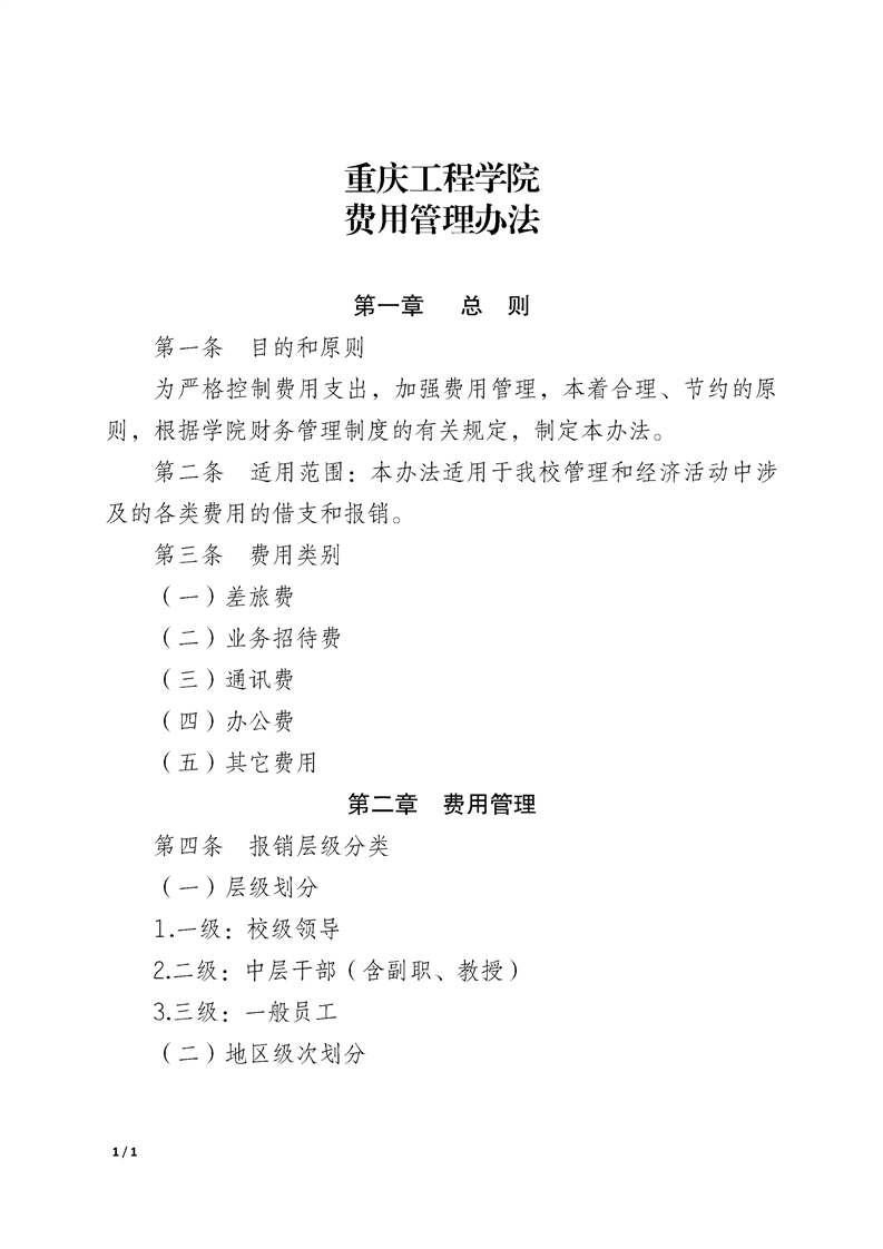 重庆工程学院费用管理办法