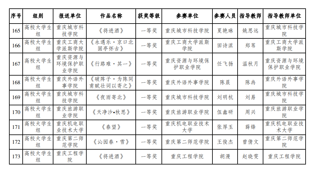 本网讯(图/文 大数据与人工智能学院 赵晓雯 冉桂香)近日,重庆市第11届“典耀中华 赓续文脉”中华经典诵写讲大赛圆满落幕,大数据与人工智能学院2023级大数据技3班的胡漫同学在诗词讲解类比赛中脱颖而出,荣获市级一等奖,为学校赢得了荣誉,展现了我校学子扎实的文学素养和卓越的综合能力。