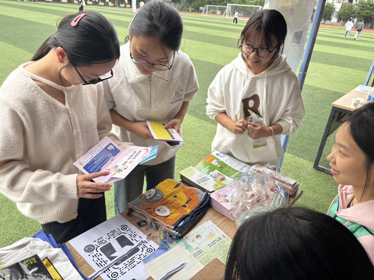 此外,现场同步开展宣传资料分发行动。志愿者主动向师生递发便携版预防手册,并搭配印有防治标语的创意小礼品,比如定制钥匙扣、书签等,让健康知识突破固定宣传点限制,覆盖更多校园场景,进一步提升知识触达率与师生的主动传播意愿。