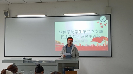 2021年1月4日13:00,软件学院学生第二党支部在6118教室开展了2020年度党支部民主生活会和民主评议会,一共54名支部成员参加会议,其中正式党员15人。