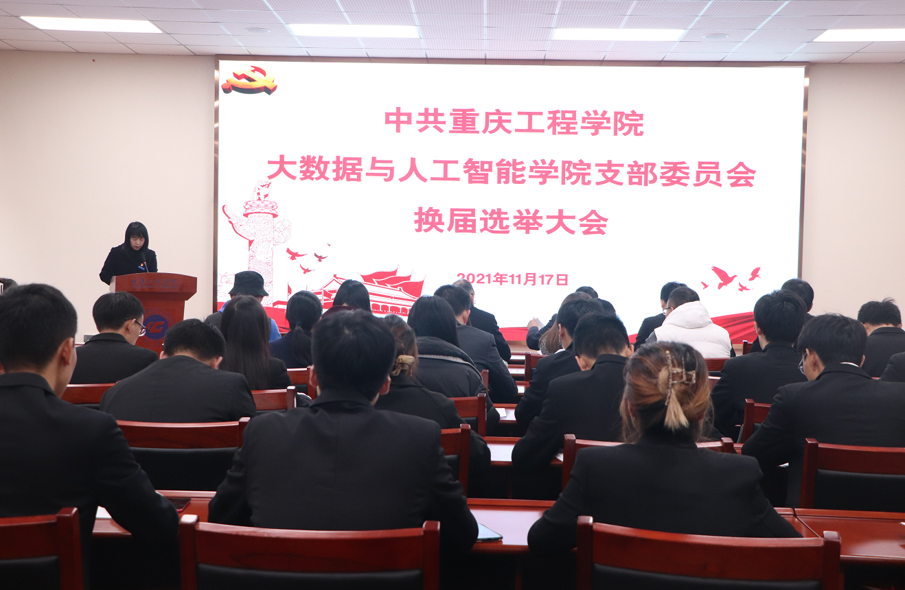 2021年11月17日下午,大数据与人工智能学院党支部在新办公楼201召开支部委员会换届选举大会。会议由唐蕾同志主持,学校党委书记谭明术出席,学院全体正式党员、预备党员参加。