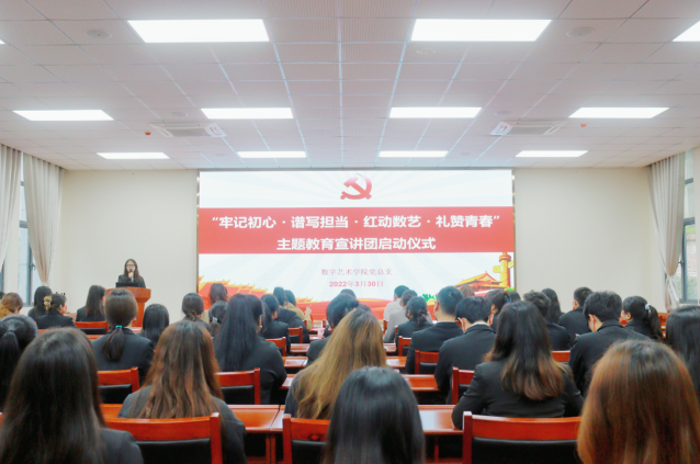 2022年3月30日中午,在办公楼第四会议室举办了“牢记初心·谱写担当·红动数艺·礼赞青春”主题教育宣讲团成立仪式。本次活动由党践中心主任吴佳忆主持,学院党总支书记徐小辉出席,专职组织员周思琦、院团委书记林云帆、全体辅导员、宣讲团全体成员及学生党员实践教育中心全体成员参会。