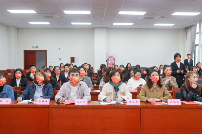 最后,党总支书记徐小辉同志对宣讲团的成立表示祝贺,并提出四点意见。一是宣讲团要做好宣讲“最先一公里”,宣讲成员要先低下头去学习和总结,要把知识和经验实现三个转化,转化成与学习相关的理论,转化成听得懂的话语体系;要回应好宣讲“最后一公里”。二是要做好规划,真正深入到同学中去、深入到群众中来做好宣讲活动。三要注重宣讲和个人成长成才紧密结合,于实践中身体力行,不断提升思维能力和素质本领,做到真学、真讲、真练。四是宣讲团指导老师及宣讲成员要做好传承工作,及时发现苗子,培养好苗子。