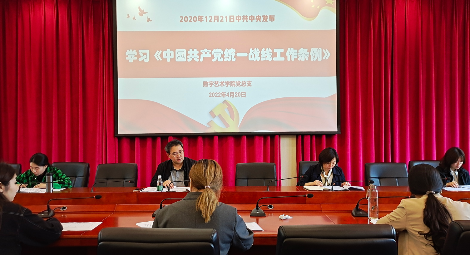 2022年4月20日,数字艺术学院党总支在行政楼第五会议室开展了数字艺术学院“讲述统战故事·凝聚磅礴力量”统一战线活动。学院党总支书记徐小辉、统战委员桂风娇、专职组织员周思琦与党院党外人士参加活动。