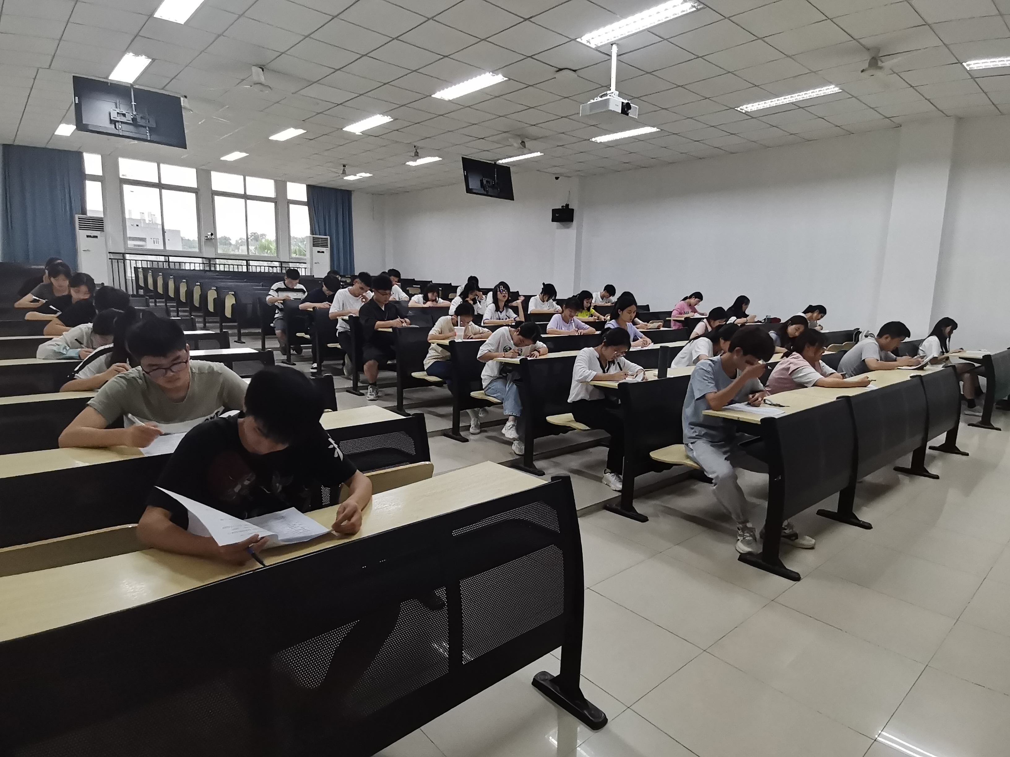 本次活动以书面竞答的形式开展,从“学习强国”学习平台题库中抽取竞答试题,设有单选、多选、填空、简答四种题型。竞答在同学们演唱《党员先锋之歌》后拉开帷幕,参与竞答的同学们专心致志、沉着冷静答题,积极展现自己对党的理论知识的学习成效。