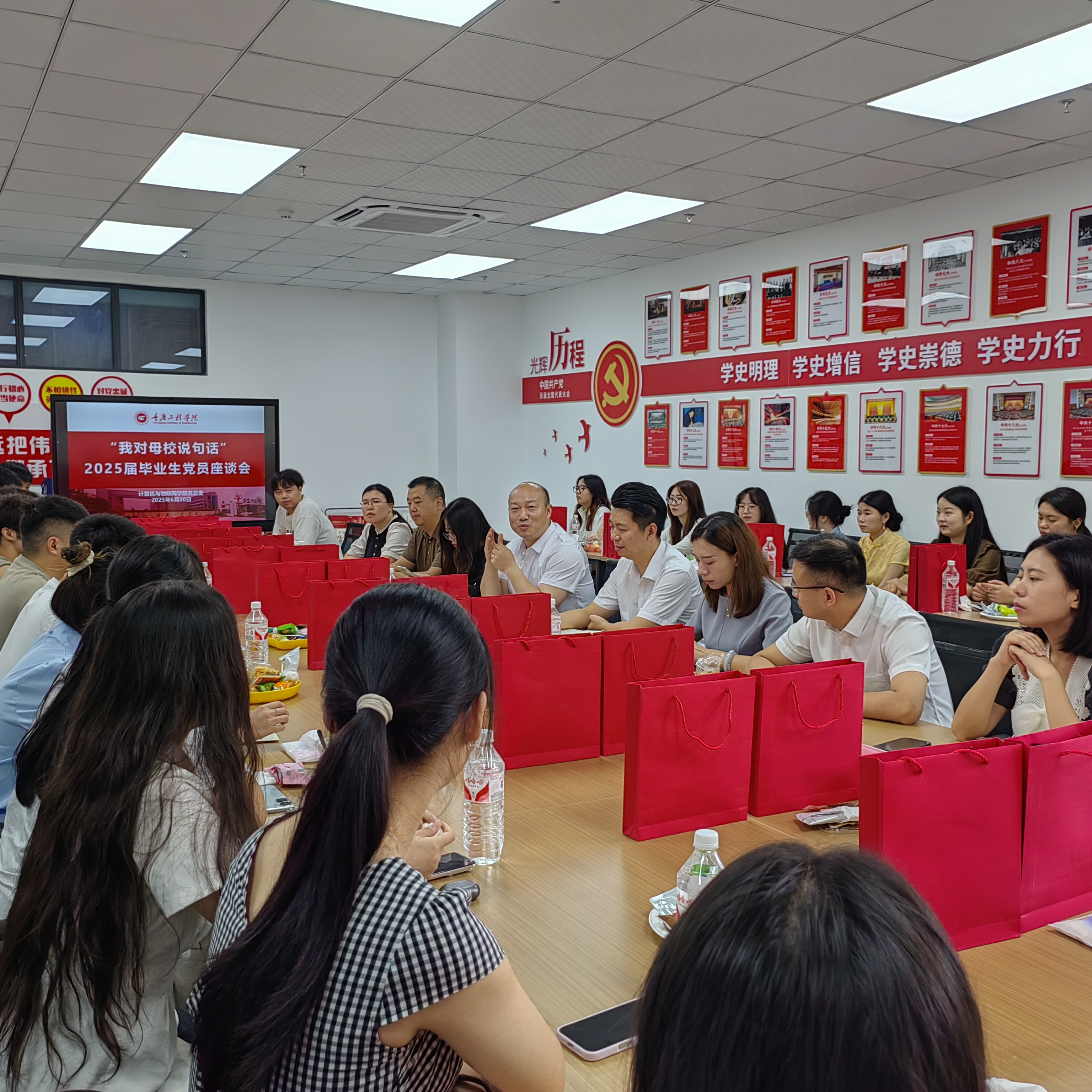 为持续深化毕业生党员教育,激励其坚定理想信念、勇担时代重任,计算机与物联网学院于2025年6月20日隆重举行2025届毕业生党员座谈会。学院院长李发陵、党总支书记黄涛、党总支委员、各系教师党员代表及全体毕业生党员齐聚一堂,共话初心使命,展望未来发展。