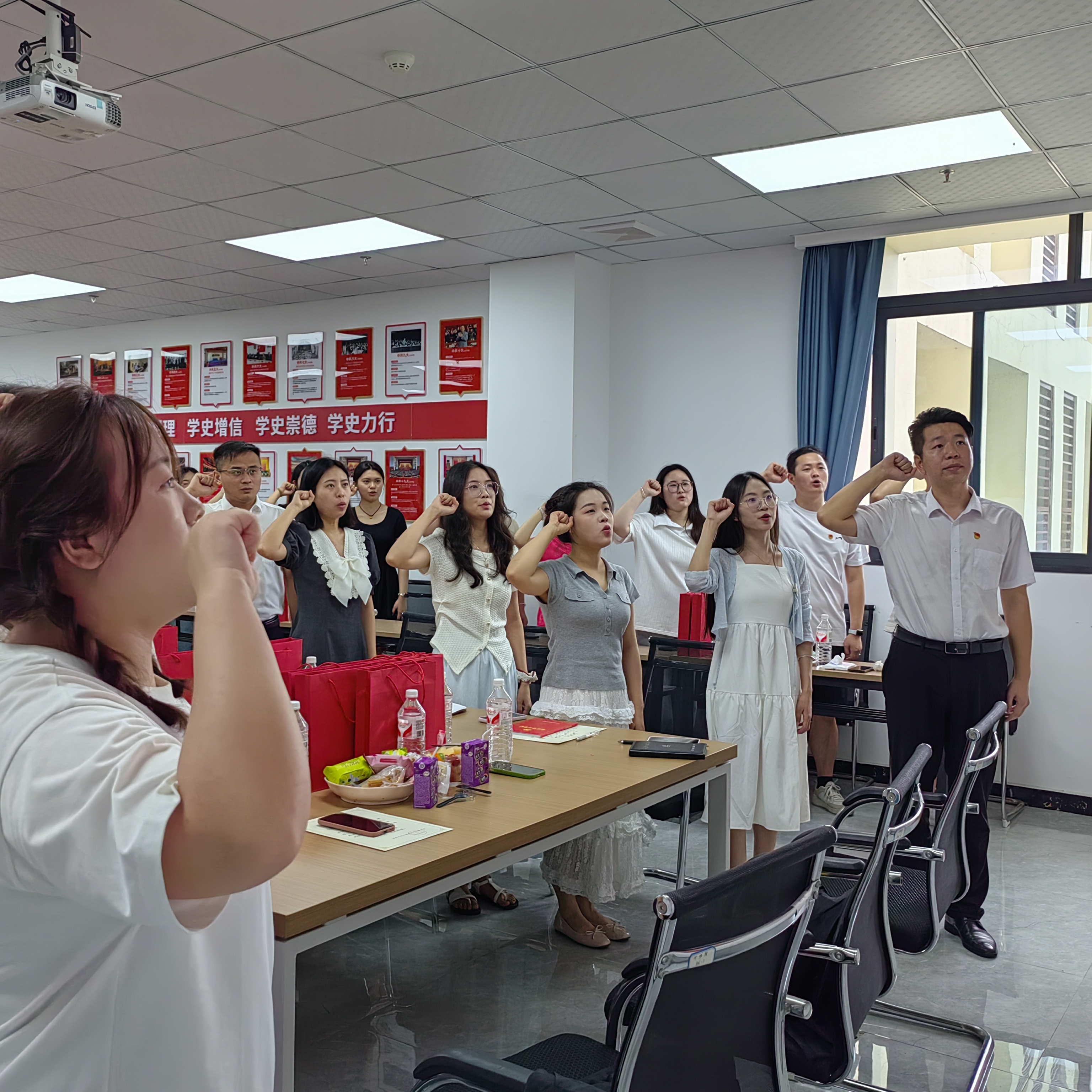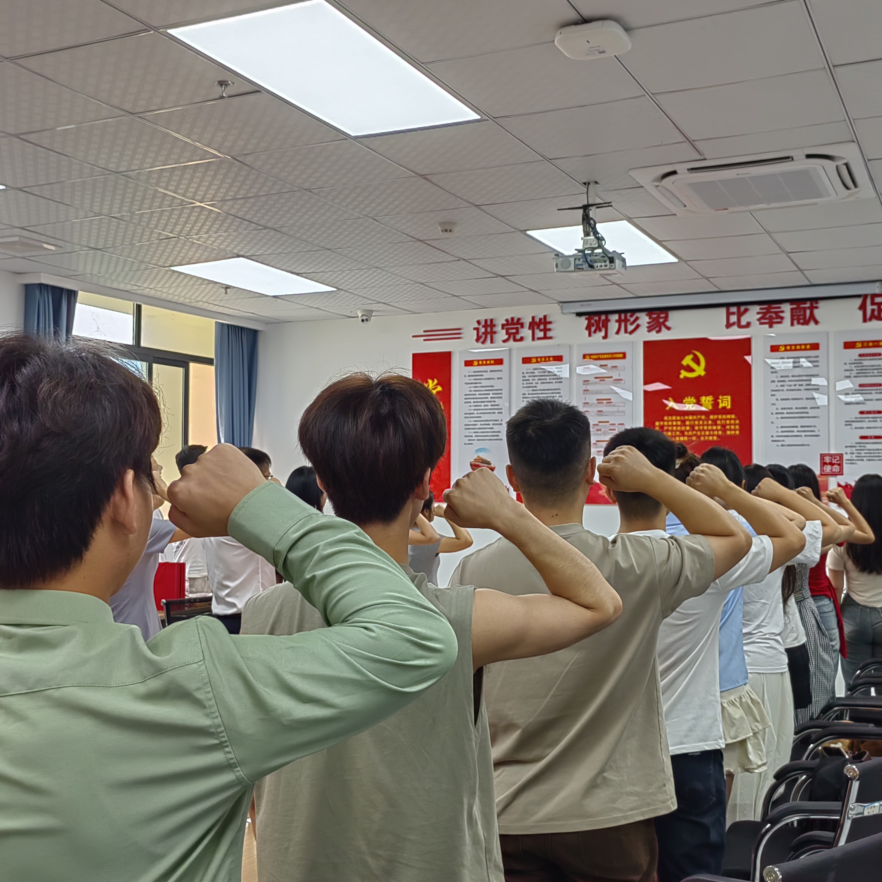 会议伊始,在黄涛同志的领誓下,全体与会党员面向党旗,庄严地重温入党誓词,铿锵有力的誓言响彻会场,激励着每一位党员铭记入党初心,筑牢信仰之基,永葆对党的忠诚与热爱。