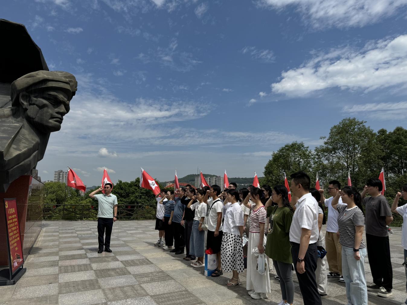 参观结束后,在红军渡纪念碑前,全体党员教师高举右拳,庄严地重温了入党誓词。“我志愿加入中国共产党……随时准备为党和人民牺牲一切,永不叛党。”铿锵有力的誓言在纪念碑上空回荡,表达了党员教师们对党的无限忠诚和为共产主义事业奋斗终身的坚定决心。在历史丰碑的见证下,党员们完成了对初心使命的再次叩问与精神信仰的深度淬炼。