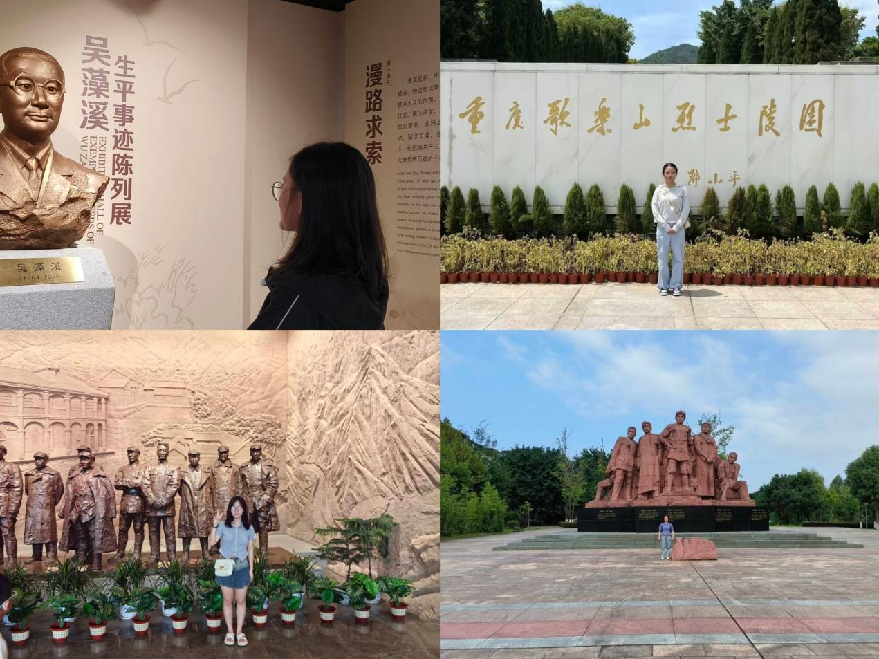 本次活动以灵活多样的参与形式激发学生主动性,学生可自主选择“合影感悟”或“景点讲解”两种方式完成实践任务。在“合影感悟”环节,同学们怀揣敬畏之心参观革命旧址、纪念馆等红色景点,用镜头定格与历史的对话瞬间,每张合影背后都承载着对革命先辈的缅怀。“景点讲解”赛道上,同学们化身“红色讲解员”,通过音频或视频,生动讲述景点背后的英雄事迹与历史意义 。
