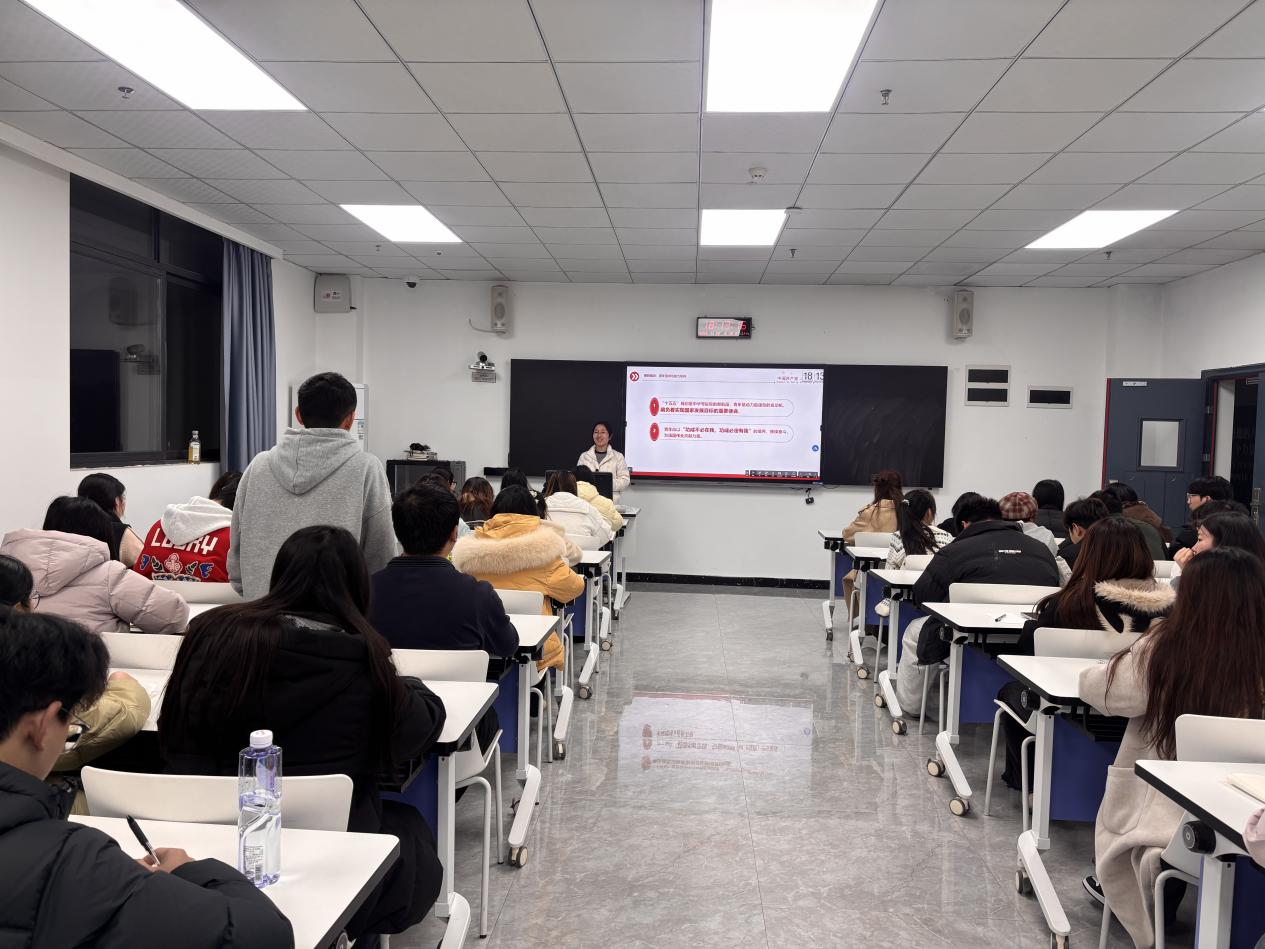 本次党课聚焦“十五五”规划建议与支部“红魂领航,四联共进”育人工作实施方案。支部书记余巧详细解读了“十五五”期间推动高质量发展、加快科技创新、建设现代化产业体系等重点任务,强调“强化国家战略科技力量”“促进数字经济和实体经济深度融合”等部署,为青年学子成长成才提供了明确指引。同时,书记介绍了支部“红魂领航,四联共进”育人实施方案,该方案围绕思想联动、学业联动、实践联动、创新联动四个维度,系统开展理论学习、实践锻炼与创新竞赛等活动,助力同学们提升综合素质、实现全面发展。