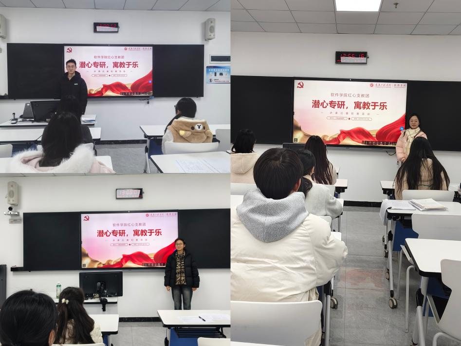 本网讯(文/图 软件学院 胡渝苓/徐梦槿)为全面提升红心支教团的教学质量,选拔杰出的教学人才,激发成员的创新精神和教学热情,进而推动支教团的教学发展。软件学院红心支教团于12月15日在第七教学楼举办了以“潜心专研,寓教于乐”为主题的讲课比赛初赛活动。