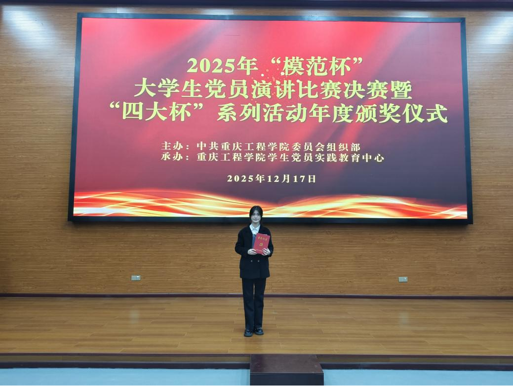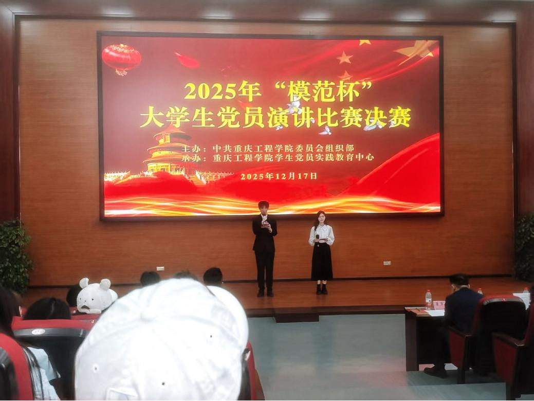 本网讯(文/图 陈乙琳)为深入推进青年党员思想政治建设,筑牢信仰之基,激励广大青年在新时代征程中奋勇争先,12月17日下午,重庆工程学院2025年“模范杯”大学生党员演讲比赛决赛在南泉校区7807报告厅隆重举行。本次比赛以“红色铸魂,青春建功新时代”为主题,旨在引导青年党员传承红色基因、坚定理想信念、彰显青春担当。新媒体电商学院经前期在南泉、双桥两校区初赛的严格遴选,各推选出一名优秀学员代表学院参加决赛,展现了学院青年党员扎实的理论素养与昂扬的精神风貌。