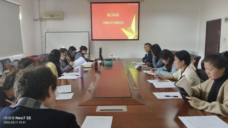 会议第三项议程为全体党员开展批评与自我批评,各位党员同志逐一进行自我检视,紧扣思想、工作、作风实际,深入查摆自身在理论学习、教学科研、党建参与、服务群众等方面的问题与不足;相互批评环节中,全体党员本着实事求是的原则,坦诚相见、直言不讳,既指出问题症结,又给出改进建议,真正达到了“红脸出汗、排毒治病”的效果,增进了团结、实现了共同提高。