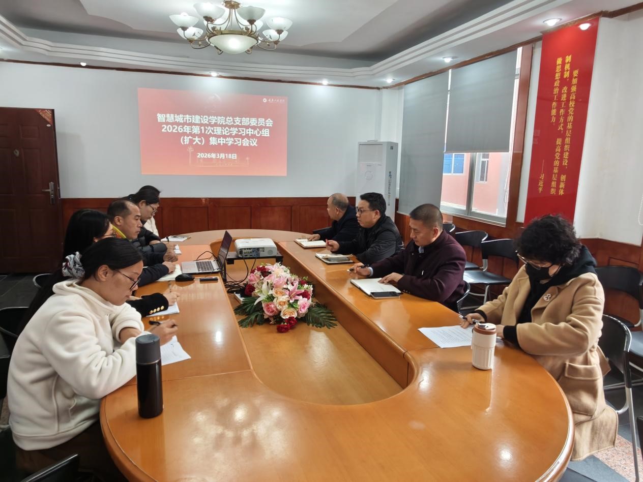 本网讯(文/图 吴俊峰) 3月18日,智慧城市建设学院党总支召开理论学习中心组学习(扩大)会暨党总支组织生活会,总支委员及各党支部书记参加会议。