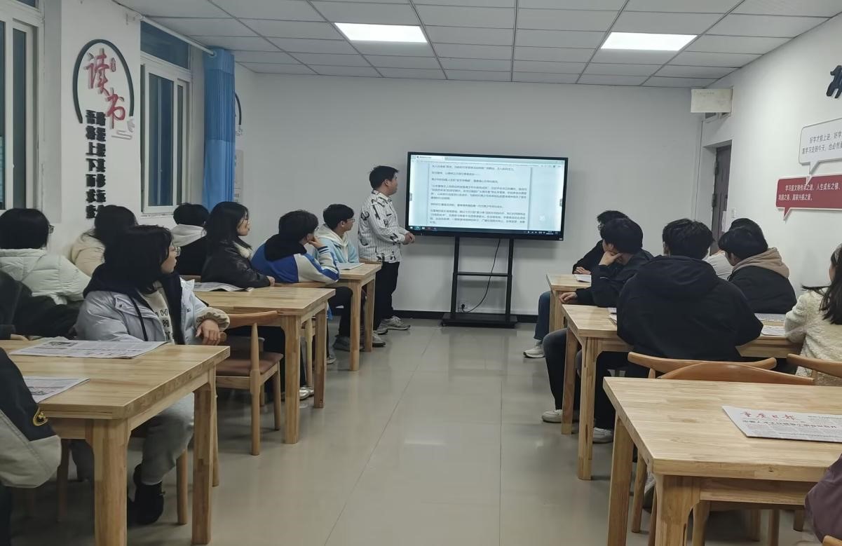 本活动紧扣本期《重庆日报》时政要闻与政策解读,围绕市委人才工作会议精神、全国两会精神学习贯彻、重庆电竞产业发展、社会治理创新等本地重点工作,结合“学习强国”平台相关专题内容开展学习。同学们逐版研读党报,从全市人才引育留用的部署中感悟城市发展脉搏,从产业升级、民生改善的报道里领会党中央决策部署在重庆的生动实践。在交流分享环节,大家结合环境设计、土木工程、工程造价等专业学习与思想实际踊跃发言,畅谈如何将专业所长融入城市更新、乡村振兴等发展大局,在思想碰撞中深化理论认知,进一步坚定理想信念、凝聚奋进力量。