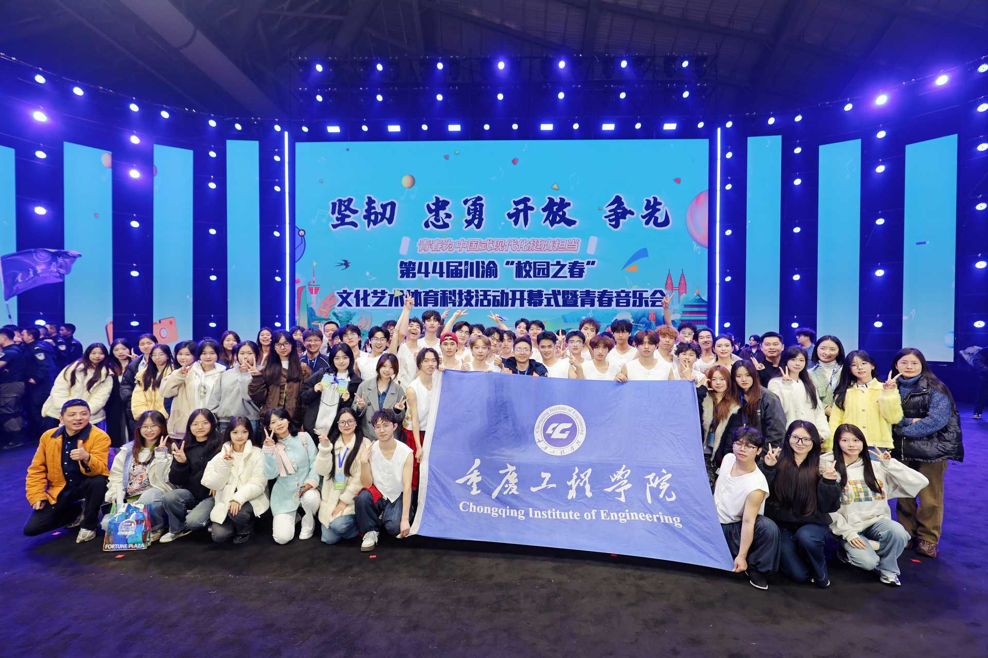 3月22日,第44届川渝“校园之春”文化艺术体育科技活动开幕式暨青春音乐会在合川区体育中心体育馆举行。本次活动以“坚韧、忠勇、开放、争先”的重庆城市精神为主线,通过艺术演绎展现川渝地区的文化底蕴与时代精神,吸引了来自川渝两地21所高校的师生代表参与。市委副书记、市人大常委会副主任李明清出席活动并宣布开幕。