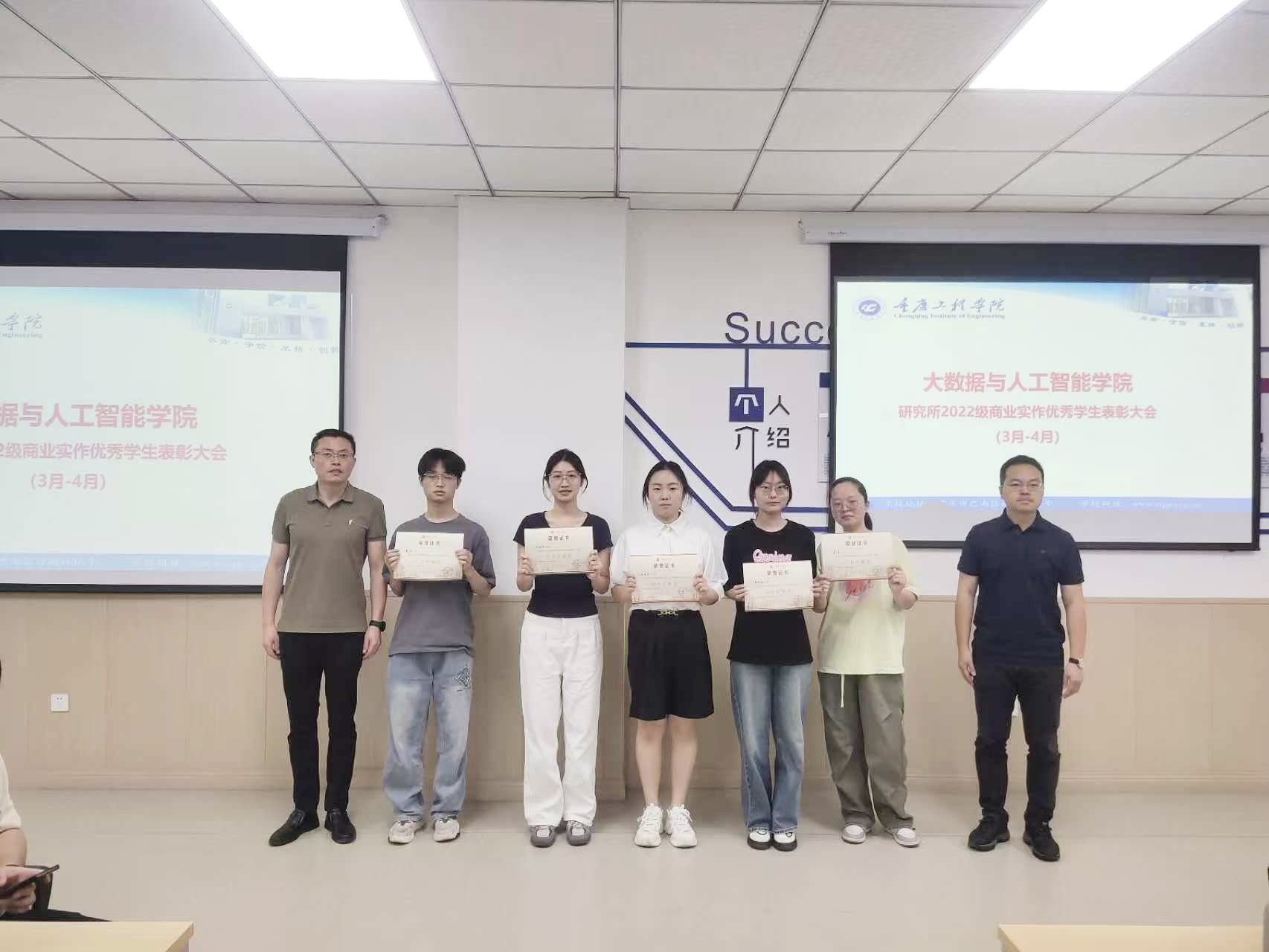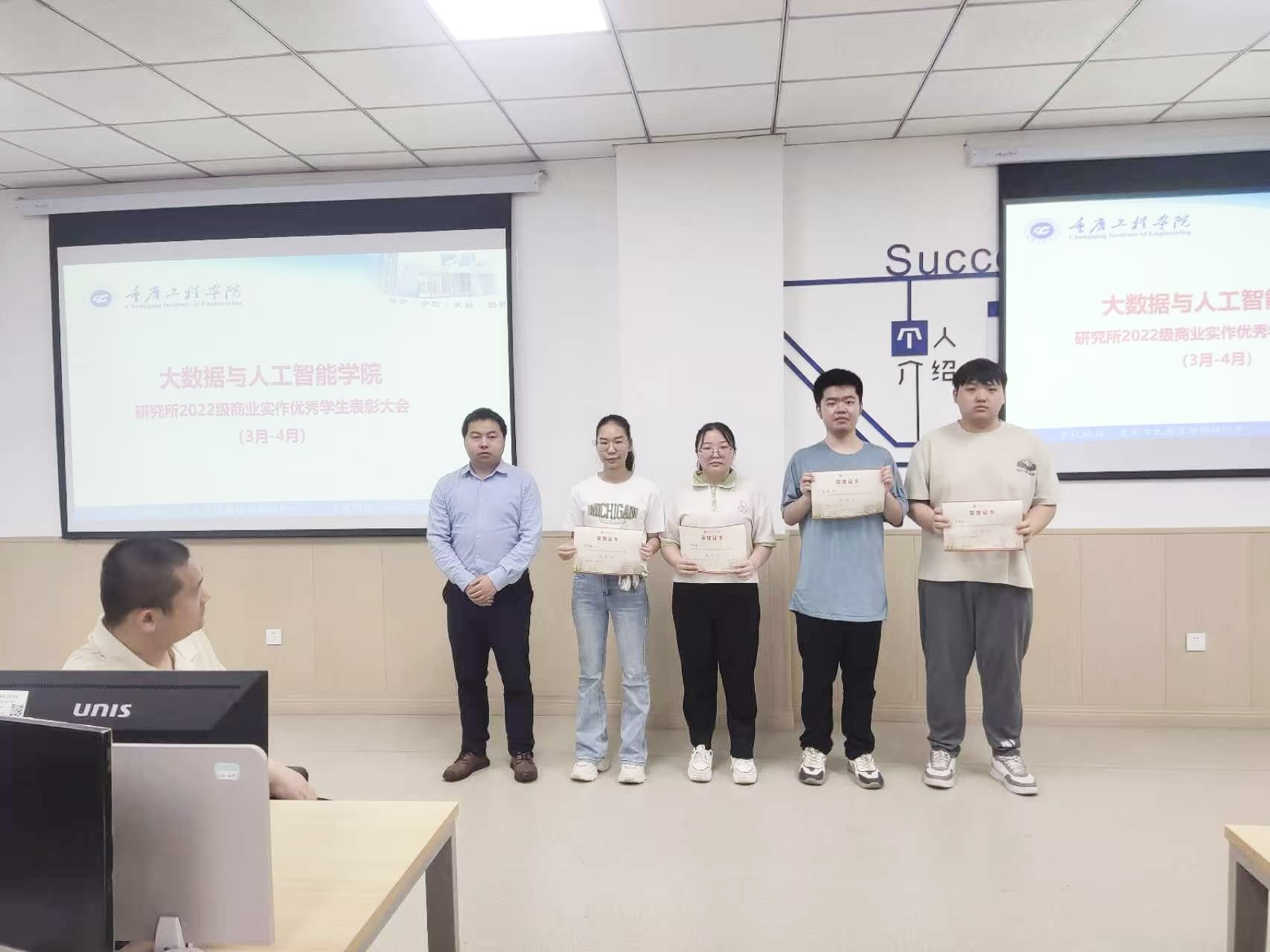 5月9日上午9:30,大数据与人工智能研究所在3202教室举行2022级商业实作优秀学生(3月-4月)表彰大会。会议由马凯老师主持,学院领导、研究所负责人及师生代表100余人出席,共32名学生获表彰。