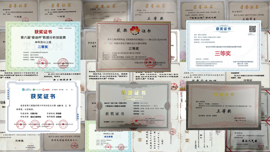 在校期间,荣获国家励志奖学金1次、学校优秀学生奖学金2次,大一综合绩点专业第一,大二综合绩点专业第二;党教中心助理,班级团支书,物理实验助理,大学生服务中心宣传部负责人,同心宣讲团成员;积极参加竞赛,在“泰迪杯”“计算机设计大赛”“物理实验竞赛”等比赛中斩获佳绩;荣获“三好学生”“创新能力先进个人”“艺术先进个人”等荣誉称号,累计荣获国家级奖项5次、省市级奖项6次、校院两级荣誉证书40余次;考取国家级职能证书3项,献血血浆超2000ml,志愿服务学时超900小时。
