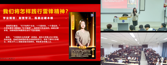 这个三月,我校组织开展了一系列理想信念主题教育班会,各班级辅导员老师以弘扬雷锋精神为主题,策划情景模拟、互动问答等多元化形式的班会课程,激励同学们树立正确的人生观和价值观,同时引导大家做好学业规划,为未来的梦想奠定坚实基础。
