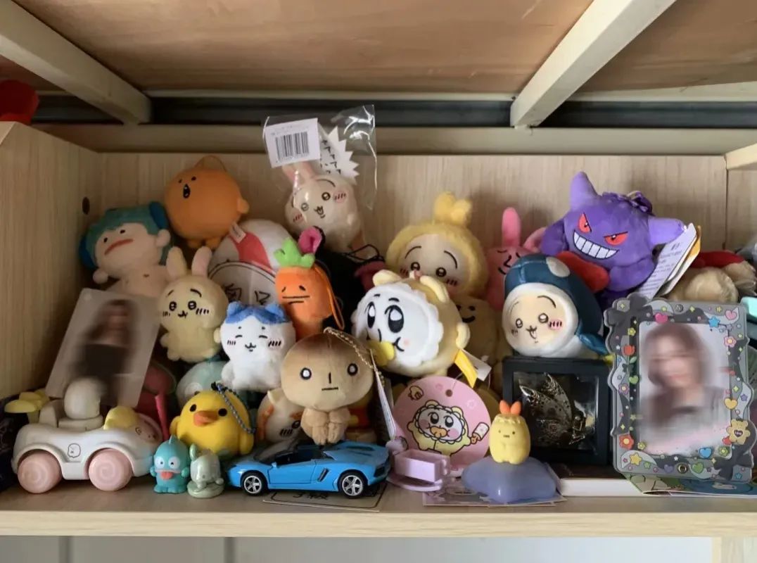 抽屉里、书架上,玩偶们组成了欢乐军团。萌萌的兔子、搞怪的卡通形象、精致的手办,每一个都藏着一段有意义的故事 —— 是某次旅行的纪念,是朋友赠送的心意,或是对童年的眷恋。
