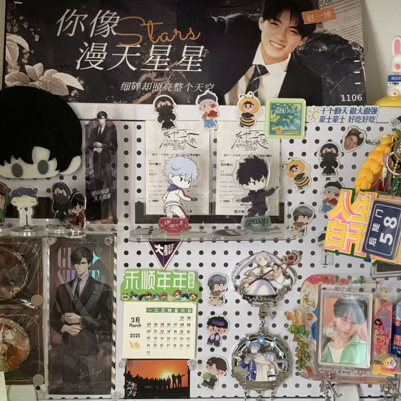 桌面一尘不染,常用书籍在一侧整齐码放着,纸巾盒居然学会壁挂术,在桌旁支棱起小帐篷,连抽三张都不会塌房。上方置物架书籍排列得整整齐齐,像等待检阅的士兵。哆啦A梦等可爱摆件点缀其间,给严肃的“阅兵环节”添了几分俏皮。这一方小天地,便是宿舍的温馨港湾,承载着我们的日常与梦想。