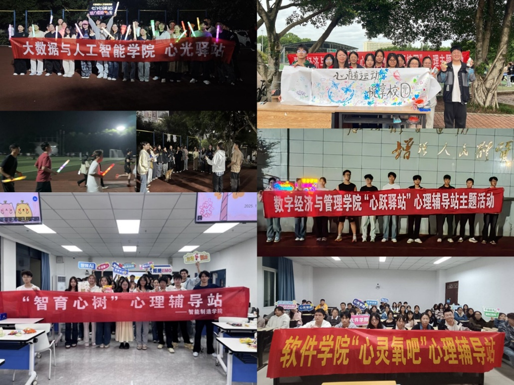 各个二级心理辅导站各自开展了特色活动。计算机与物联网学院策划“心然小站、情感共鸣”系列活动,以体验互动营造温暖互助的校园心理氛围;软件学院“心灵氧吧”心理辅导站开展了班会、心理电影赏析活动;数字经济与管理学院心理工作站心“跃”驿站组织的“心随运动,悦享校园”与校园跑主题活动都顺利开展;大数据与人工智能学院“心光驿站”举办了4项特色主题活动;智慧城市建设学院“智愈空间”举办“趣味沙包,舒心畅意”主题趣味活动;新媒体电商学院举办了“心域漫游,成长引力”主题心理活动与“情绪赋能,成长同行”主题心理微课比赛;智能制造学院“智育心树”举办“心树向阳,智悦青春”的主题心理团辅活动;电子信息学院“知芯驿站”顺利开展系列宣传活动。各二级辅导站的特色活动,共同构建了一个多元化、全覆盖的校园心理支持矩阵。这些贴近学生、富有创意的活动,将心理健康教育有机融入学院专业特色与学生日常生活,实现了心理育人工作的精准触达与个性化关怀,为营造健康向上的校园心理生态环境注入了源源不断的活力。