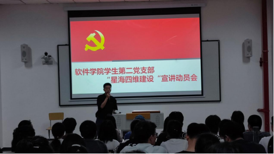(文/图 软件学院 唐爱琳)为了加强党支部建设,提升支部凝聚性、团结性,软件学院学生第二党支部于6月6日开展了“星海四维建设”宣讲动员会。软件学院学生第二党支部书记余巧、入党申请人、积极分子以及发展对象共计80余人参加。