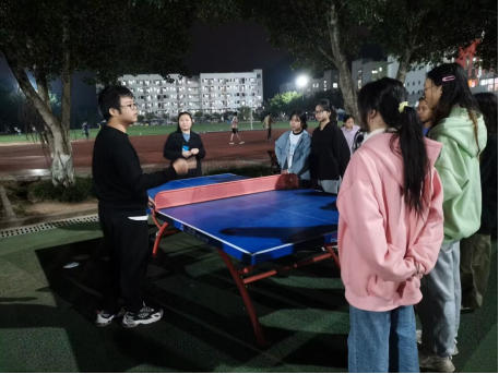 本网讯(文/孙必洪 图/软件与人工智能学院)为切实加强我校心理健康教育工作,促进同学们健康成长,丰富业余生活,加强同学间的交流,同时推动乒乓球运动在我校的发展,我院学生党员实践教育分中心联合乒乓球俱乐部于10月25日晚在乒乓球场开展“扬乒乓之风 做国之栋梁”主题实践教育活动。