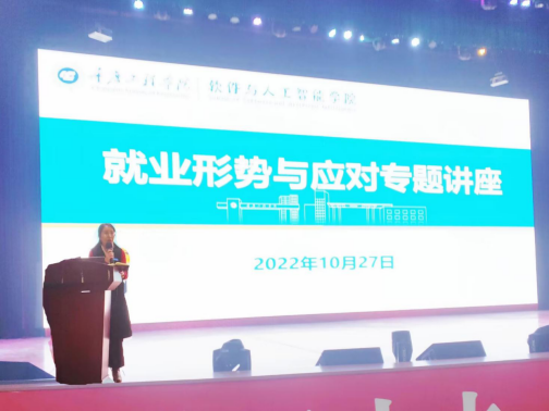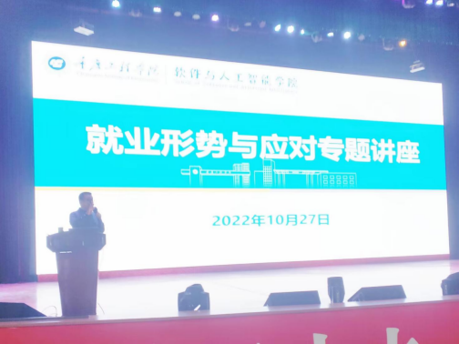 10月27日下午,软件与人工智能学院在学术报告厅举办了“就业形势与应对”专题讲座。本次讲座特邀副校长王建东授课,院党总支书记刘子菱主持,毕业班班导师、实习指导老师、辅导员老师及19级学生们全员参加。