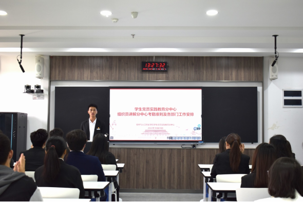 为使分中心各部门成员了解工作内容,加强团队协助,我院学生党员实践教育分中心于10月28日在第七教学楼1105召开本学期第一次全员大会。我院学生党员实践教育分中心、党员工作站全体成员共45人参会。