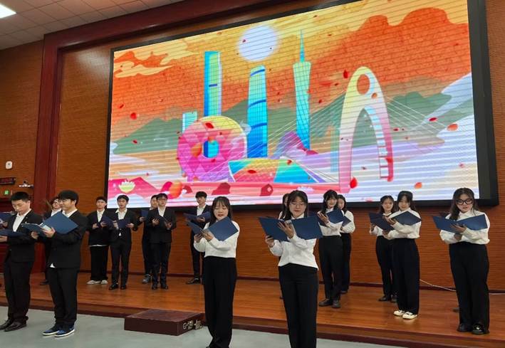 回望来路,时代的考卷,叠成阶梯;展望前路,未来的征途,任重道远。三句半《二十大进校园》用幽默重庆方言、朗朗上口的语句,号召我们在党的带领下高举旗帜向前行。