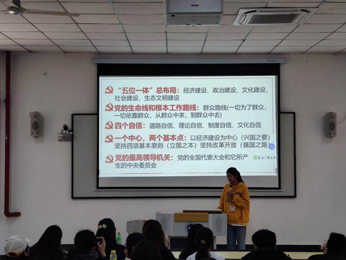 在本次培训中,唐宇杰、付雅雯、陈美西三位同志带领大家总结复习了前几节党课中各位老师所讲的重点。将党的相关知识与规定、党的发展与历史、端正入党动机、学习党员的八项权力与义务、学习二十大精神这五部分给即将参加考试的同学一一讲解,为接下来的党课培训结业考试提供了知识点的汇总。
