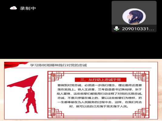 (文/图 软件与人工智能学院 晏冬群)为深刻认识中华民族的优良传统,深入了解中国革命的历史,树立民族自尊心和自豪,进一步坚定了学生中华文化立场,自觉讲好中国故事、传播好中华文化,我院学生第一党支部于2022年12月30日,开展“党旗飘扬——用心讲故事”线上主题党日活动。