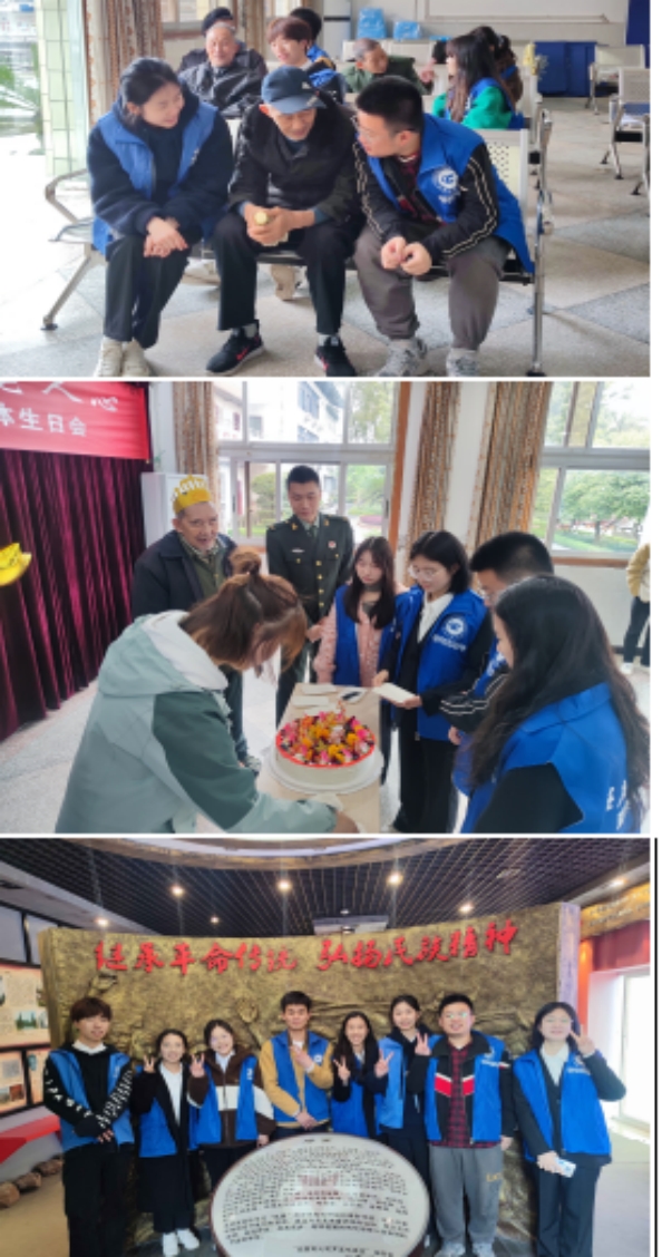 (文/图 软件与人工智能学院 郑晓龙)“青春伴夕阳,情暖故人心”,为了让老人感受温暖,提升幸福感,3月29日,软件与人工智能学院云智志愿者协会联合学生党员实践教育分中心、广场舞社团为巴南区光荣院退休老军人及军烈亲属举办了一场集体生日会。本次活动由重庆春语社会服务中心主办,我院云智志愿者协会承办,学生党员实践教育分中心及广场舞社团协办。