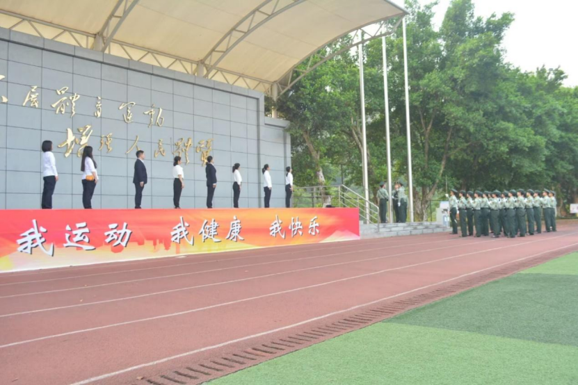 国旗护卫队整齐划一、庄严肃穆,伴随着雄壮的义勇军进行曲,升起五星红旗,师生向五星红旗致以最崇高的敬意,齐声高唱国歌。